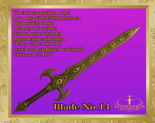 3D Sword Model (FBX+OBJ)No.14 | Animated | Game, VR, and VFX Ready