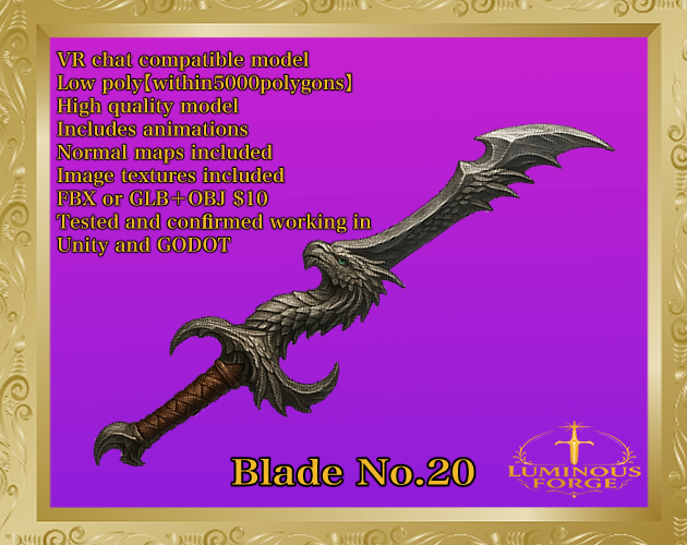 3D Sword Model (GLB+OBJ) No21| Animated | Game, VR, and VFX Ready